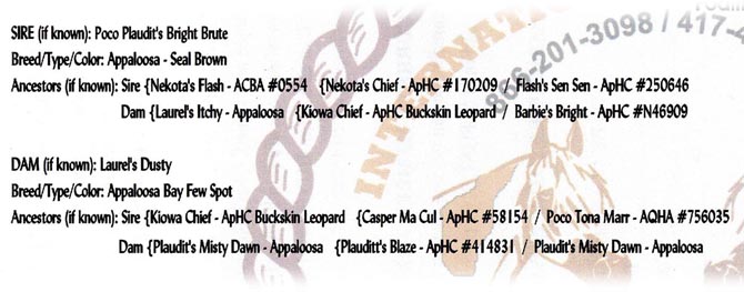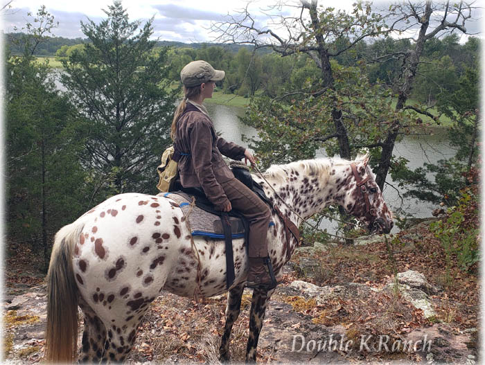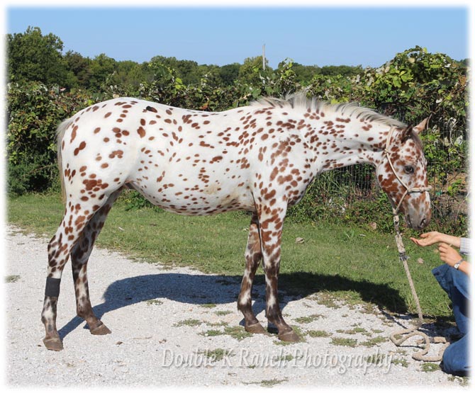 Bright Chief Plaudit ~ 2020 Leopard stallion. "Chief" is a beautiful bi-colored full leopard stallion from foundation appaloosa stock, built handy in body and in mind! Got him as a yearling, we've done all his training. Done miles and miles of outside riding, through pastures, woods, water, along highways and into town. Totally traffic safe, even for semis! Used him to give lessons as a 3 yr old stud; he's worked hard all day chasing cows through thick brush and he don't give out. Swing a rop, pull logs, pony colts or work horses in pastures, Chief can do it all with gusto and grit. He and I pulled a boat around the pond, he never acted unsure of it, even when it floated up and bumped into his hip. This spring I pulled him out of the breeding pasture with mares and took him to a week long trail ride with 80+ other horses and mules. He was level headed and wonderful, folks were amazed at how well behaved he was, most said they never would have guessed he was a stud with how calm he was round all the other horses. Goes back to a ton of the "old greats"... WigWam, Kiowa Brave, Bright Eyes Brother, Bandido, Plaudit, etc. Plaudit's VIP, Plaudit's Skip A Rue & Red Plaudit. His lineage would be ApHC accepted, but one line 'fell out' when DNA was introduced and the rancher didn't keep up while Cheif''s grandparents passed away. He is standing to all mares, of any breed/grade. 6 Panel tested clean. $500 stud fee, 30 days to catch 2 heats, $5 a day mare-care/ pasture board. For more information call 417-292-9332 |