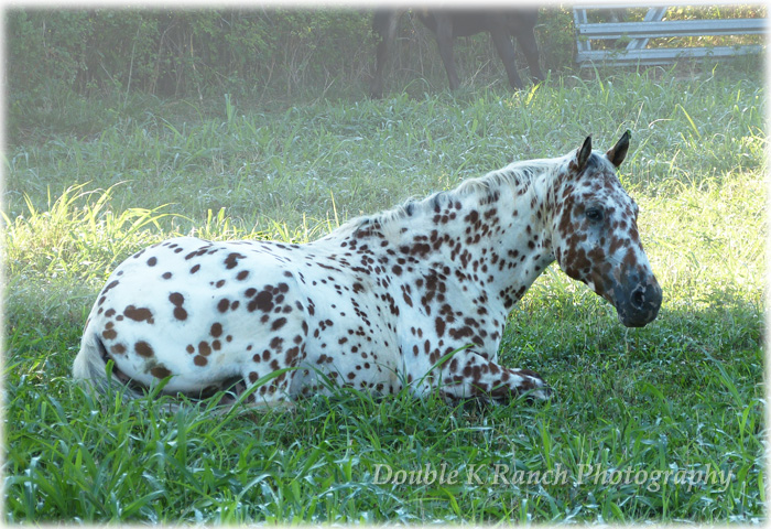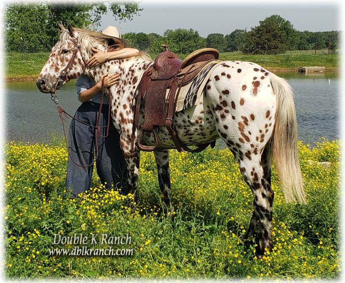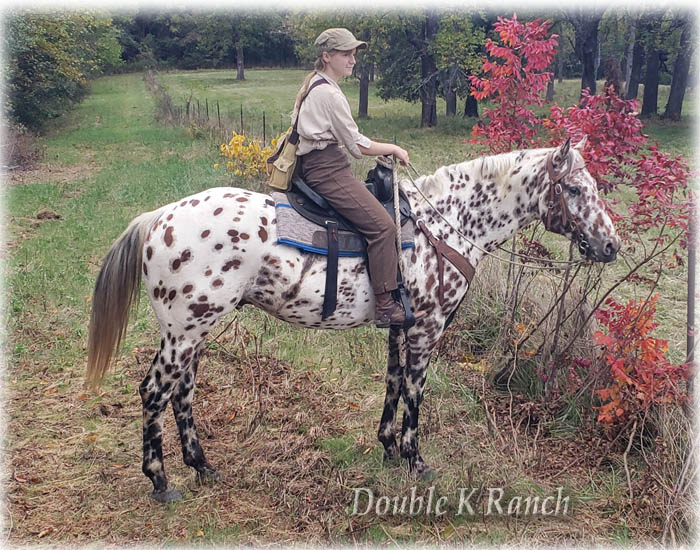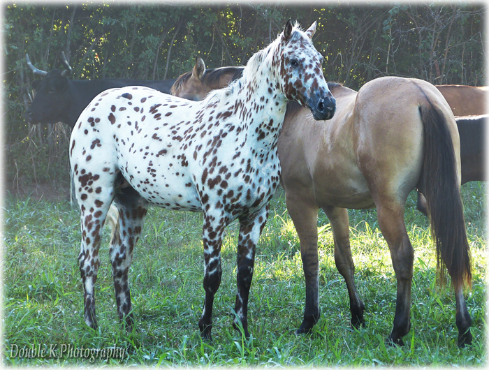 Bright Chief Plaudit ~ 2020 Leopard stallion. "Chief" is a beautiful bi-colored full leopard stallion from foundation appaloosa stock, built handy in body and in mind! Got him as a yearling, we've done all his training. Done miles and miles of outside riding, through pastures, woods, water, along highways and into town. Totally traffic safe, even for semis! Used him to give lessons as a 3 yr old stud; he's worked hard all day chasing cows through thick brush and he don't give out. Swing a rop, pull logs, pony colts or work horses in pastures, Chief can do it all with gusto and grit. He and I pulled a boat around the pond, he never acted unsure of it, even when it floated up and bumped into his hip. This spring I pulled him out of the breeding pasture with mares and took him to a week long trail ride with 80+ other horses and mules. He was level headed and wonderful, folks were amazed at how well behaved he was, most said they never would have guessed he was a stud with how calm he was round all the other horses. Goes back to a ton of the "old greats"... WigWam, Kiowa Brave, Bright Eyes Brother, Bandido, Plaudit, etc. Plaudit's VIP, Plaudit's Skip A Rue & Red Plaudit. His lineage would be ApHC accepted, but one line 'fell out' when DNA was introduced and the rancher didn't keep up while Cheif''s grandparents passed away. He is standing to all mares, of any breed/grade. 6 Panel tested clean. $500 stud fee, 30 days to catch 2 heats, $5 a day mare-care/ pasture board. For more information call 417-292-9332 |